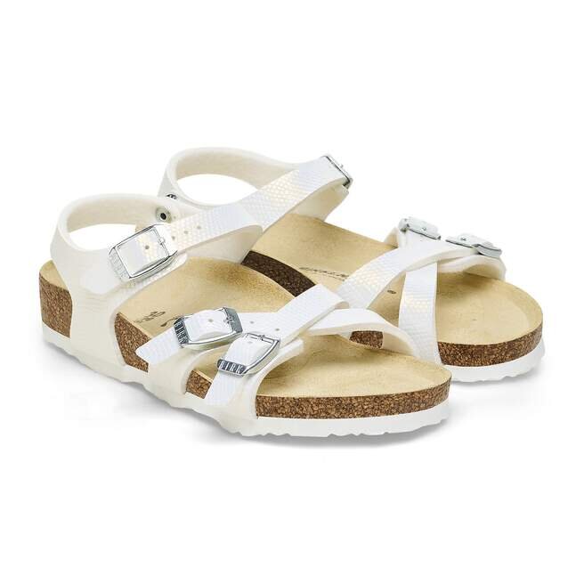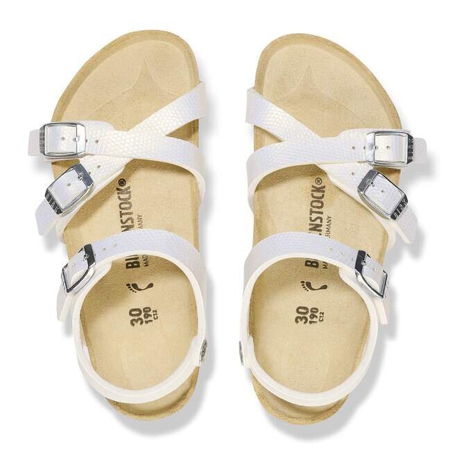 La sandale Kumba pour enfants, brillante pour capter la lumière du soleil. Le Birko-Flor® gaufré apporte une touche scintillante à leur style, avec une bride à cheville pour plus de sécurité et un ajustement parfait. Équipées d’un Original Footbed Birkenstock® pour les accompagner tout au long de leurs journées de jeu.