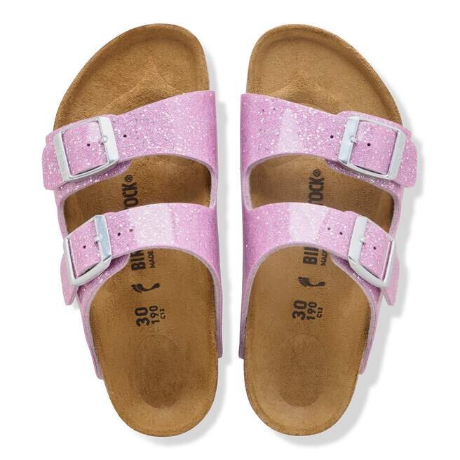 Le légendaire modèle à deux lanières de Birkenstock : l’Arizona pour enfants. Un style emblématique associé au confort caractéristique de la semelle Birkenstock. Présenté en Birko-Flor® « Cosmic Sparkle ».