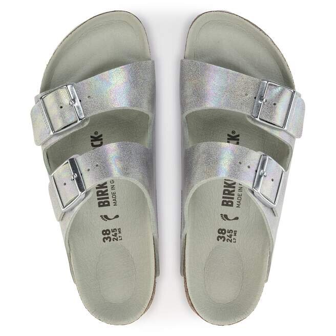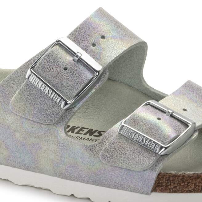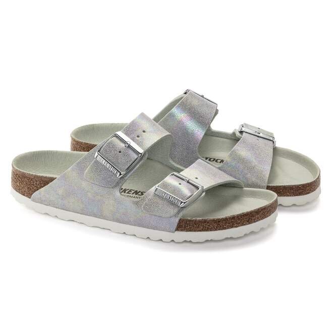 Le légendaire modèle à deux lanières de Birkenstock – l’Arizona, désormais disponible en version vegan. Un style emblématique associé au confort caractéristique de la semelle Birkenstock. Cette version présente un éclat irisé et soyeux avec des reflets multicolores. La tige est en microfibre douce pour la peau.