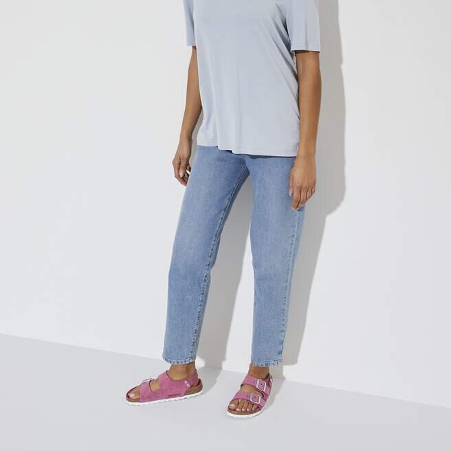 Milano est à l’honneur. Le daim chatoyant reflète la lumière du soleil sous tous les angles de cette sandale d’inspiration urbaine. Une bride arrière réglable vous offre un maintien supplémentaire et un ajustement parfait. Équipée d’une semelle intérieure originale Birkenstock en liège et latex qui s’adapte à votre pied pour un soutien sur mesure.