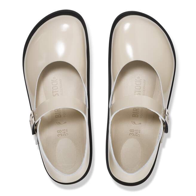 La Birkenstock Mantova est une réinterprétation de la Mary Jane classique dans une version rustique et particulièrement confortable. Le modèle présente une finition à bords francs et sans doublure qui souligne son aspect naturel. Cette version est dotée de la boucle Droplet, entièrement réalisée en zamak de haute qualité et de forme carrée. Son design allie une qualité haut de gamme à un look moderne et intemporel. La tige est en cuir naturel de haute qualité avec un revêtement verni brillant.