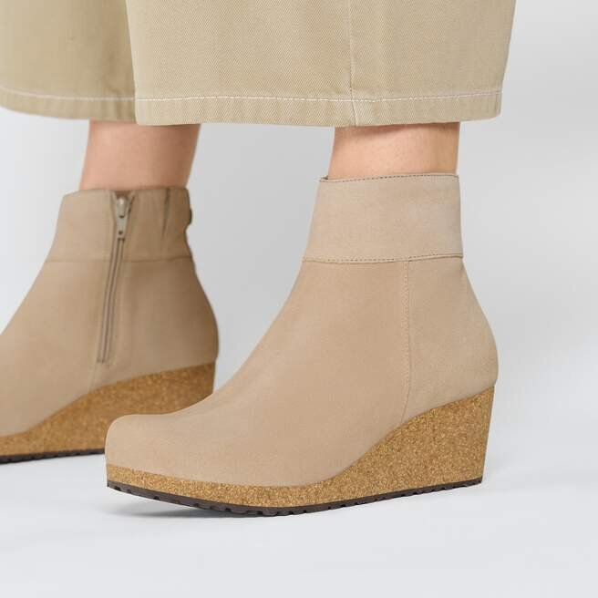 La bottine Ebba allie le confort ergonomique de la semelle Birkenstock à un talon compensé en liège, le tout sans exercer de pression sur l’avant du pied. En daim lisse pour un look classique. Rehaussez votre style en tout confort.