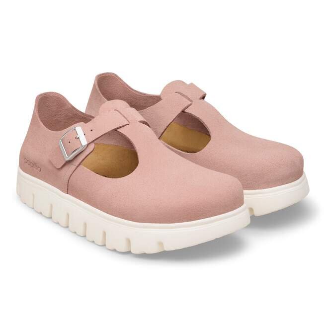 La Birkenstock Paris est une réinterprétation de la célèbre silhouette Mary Jane. Cette chaussure accrocheuse, dotée d’un design classique à bride en T, allie une élégance intemporelle à un confort moderne. La bride en T remarquable confère au modèle un look à la fois féminin et moderne, idéal pour un usage quotidien. La boucle sur le côté permet d’ajuster la chaussure pour un chaussant parfait et assure un maintien optimal tout au long de la journée. Papillio présente ici cette chaussure dotée d’une semelle compensée élégante aux rainures très profondes. Les biseaux à l’avant et à l’arrière offrent un confort de marche maximal. La tige est fabriquée en daim particulièrement souple qui épouse le pied comme une seconde peau.