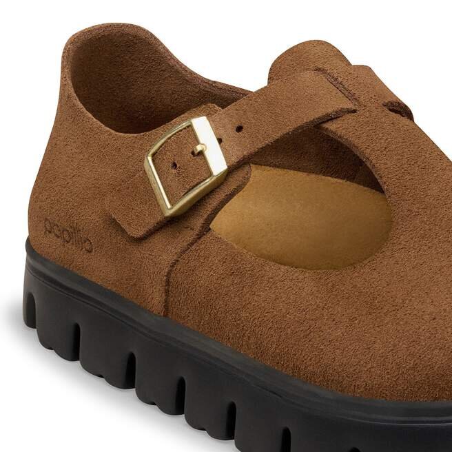 La Birkenstock Paris est une réinterprétation de la célèbre silhouette Mary Jane. Cette chaussure accrocheuse, dotée d’un design classique à bride en T, allie une élégance intemporelle à un confort moderne. La bride en T remarquable confère au modèle un look à la fois féminin et moderne, idéal pour un usage quotidien. La boucle sur le côté permet d’ajuster la chaussure pour un chaussant parfait et assure un maintien optimal tout au long de la journée. Ici, Papillio présente la chaussure avec une semelle compensée élégante dotée de rainures très profondes. Les biseaux à l’avant et à l’arrière offrent un confort de marche maximal. La tige est fabriquée en daim particulièrement souple qui épouse le pied comme une seconde peau.
