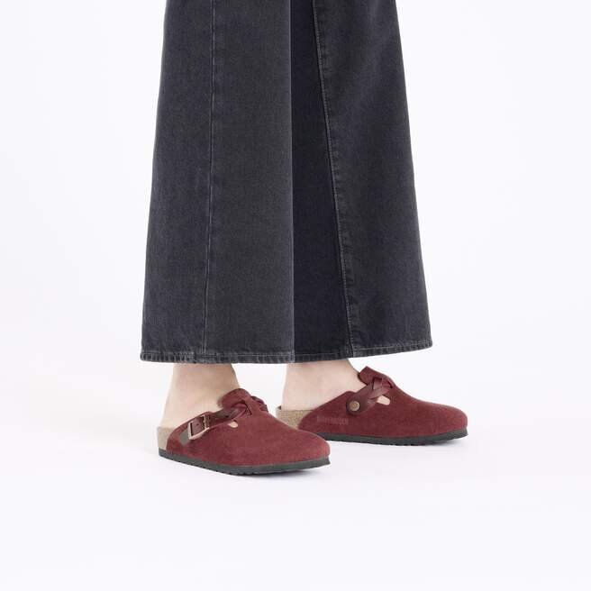 Le sabot Boston revisité. Un tressage d’inspiration bohème s’étend sur la tige en daim classique pour former une seule bride sophistiquée. Ce modèle repose sur notre Original Footbed, prêt à accumuler autant de kilomètres et de souvenirs que vous le souhaitez.