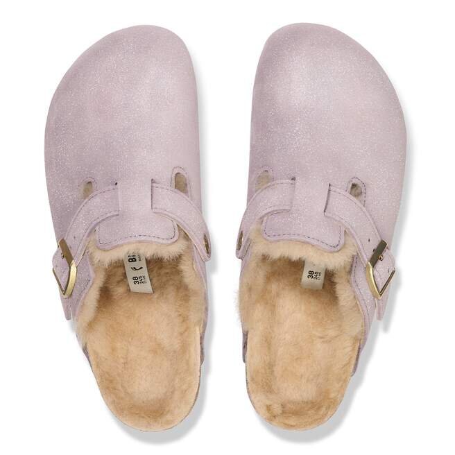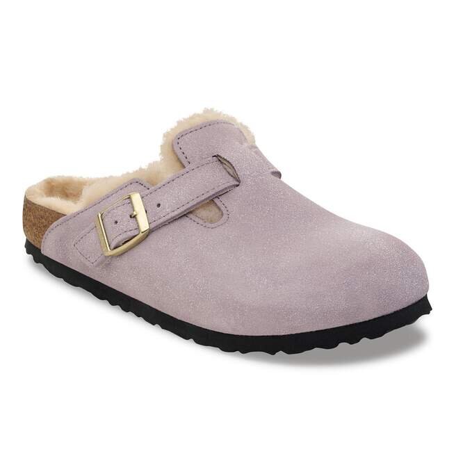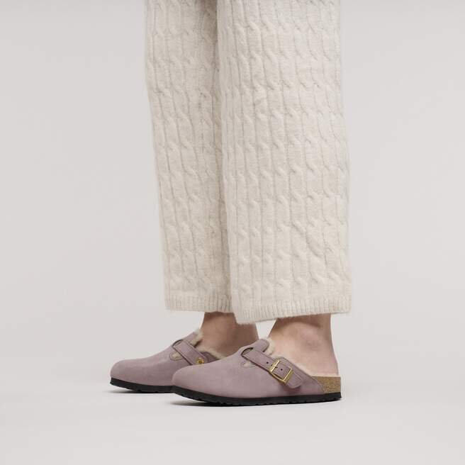 Le Boston Clog, une version douillette pour les mois les plus froids. Le daim chatoyant capte délicatement la lumière, la faisant entrer à l’intérieur. Le modèle est entièrement doublé de véritable peau de mouton, jusqu’à la semelle intérieure profilée d’origine. Un atterrissage doux et soutenu à chaque pas.