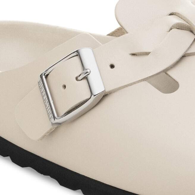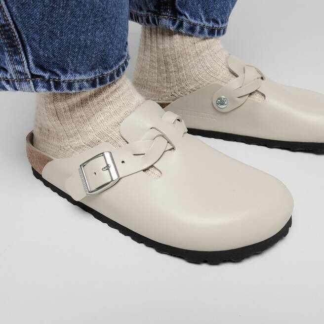 La Birkenstock Boston est un véritable classique qui se porte facilement toute l’année. Elle jouit d’un statut légendaire grâce à son design sophistiqué et réglable individuellement. Ici, le modèle présente un détail particulier : les lanières arborent un motif tressé, ce qui en fait le compagnon idéal des styles bohèmes tendance. La semelle semi-exquise est entièrement doublée de cuir Piumato souple, ce qui la rend exceptionnellement confortable. La tige est fabriquée en cuir Amalfi particulièrement fin et de haute qualité.