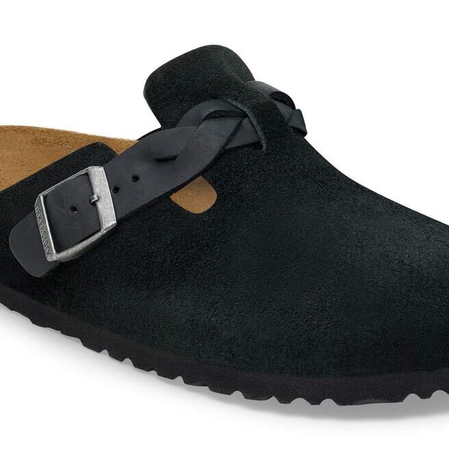 Le Boston Clog revisité. Un tressage d’inspiration bohème s’étend sur la tige classique en daim pour former une seule bride sophistiquée. Ce modèle repose sur notre Original Footbed, prêt à accumuler autant de kilomètres et de souvenirs que vous.