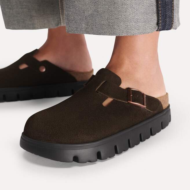 Une semelle compensée Chunky propulse le design emblématique du Boston Clog vers de nouveaux sommets — et votre style avec lui. Le daim velouté offre le même cachet classique que l’original, tout en apportant une touche de modernité grâce à la semelle compensée qui ne passe pas inaperçue.