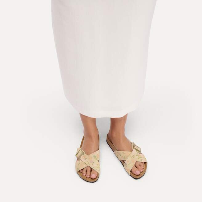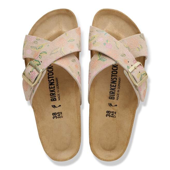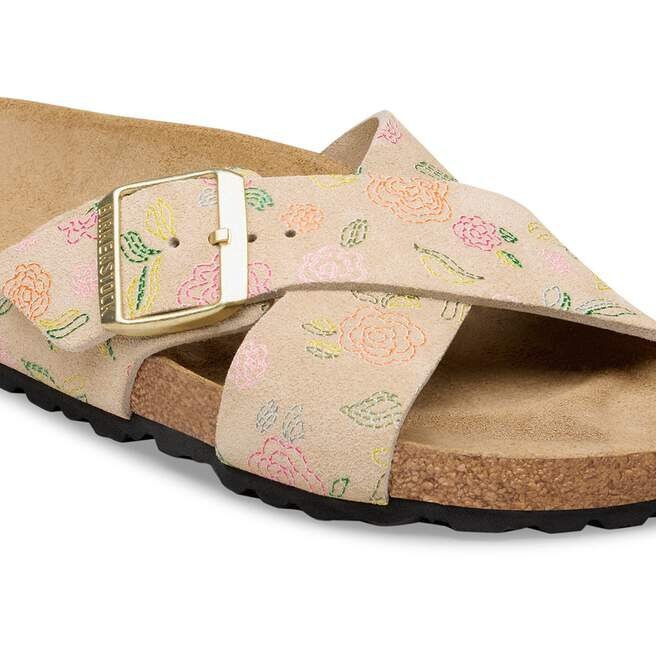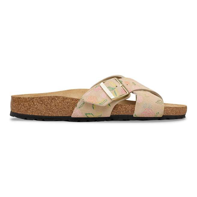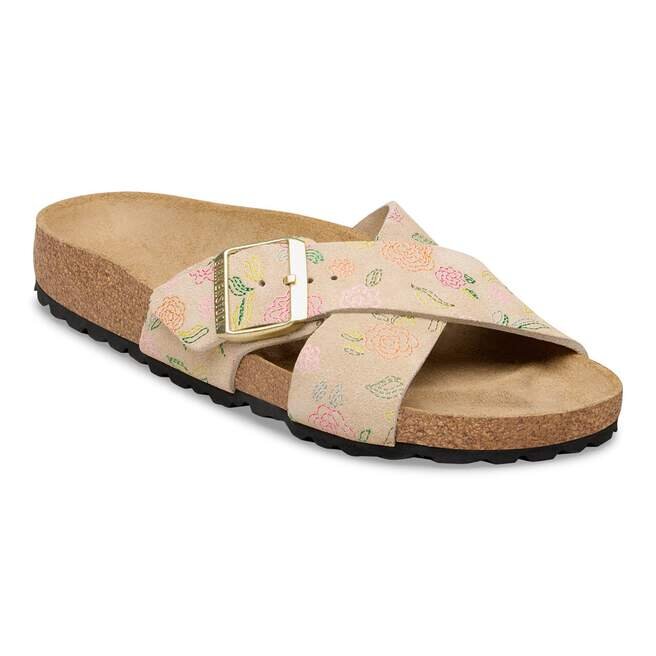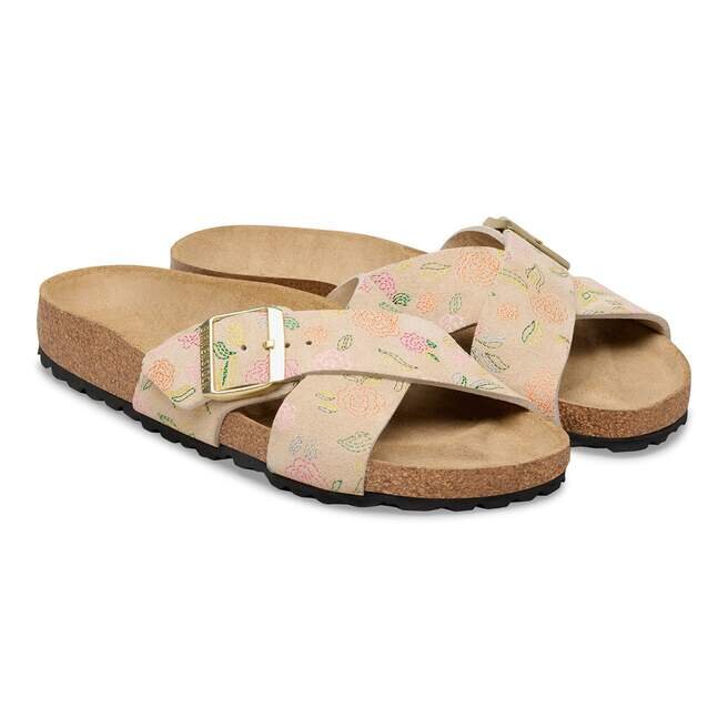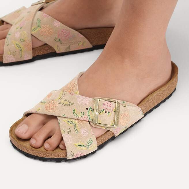 La Birkenstock Siena se distingue par son aspect raffiné. Les lanières croisées confèrent à la sandale son look unique et particulier. Cette version présente un motif floral délicat. La tige est en daim particulièrement souple qui épouse le pied comme une seconde peau.