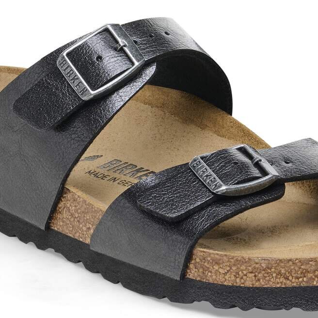 Le cuir naturel se reconnaît à sa surface non traitée. Birkenstock s’abstient délibérément de traiter le grain de la surface et les autres caractéristiques du cuir. Birkenstock utilise du cuir robuste d’une épaisseur de 2,8 à 3,2 millimètres comme matériau de la tige.