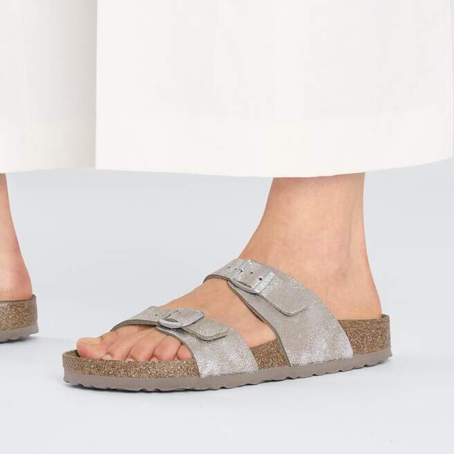 Le cuir naturel se reconnaît à sa surface non traitée. Birkenstock s’abstient délibérément de traiter le grain de la surface et les autres caractéristiques du cuir. Birkenstock utilise un cuir robuste d’une épaisseur de 2,8 à 3,2 millimètres comme matériau de la tige.