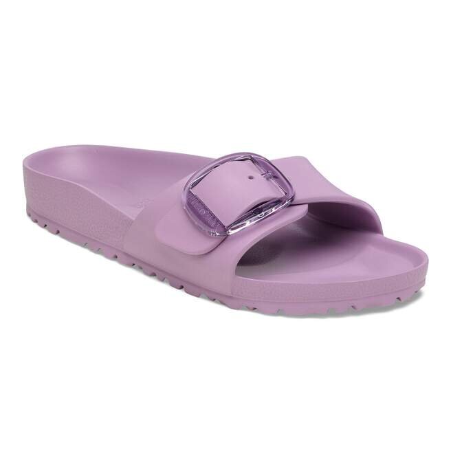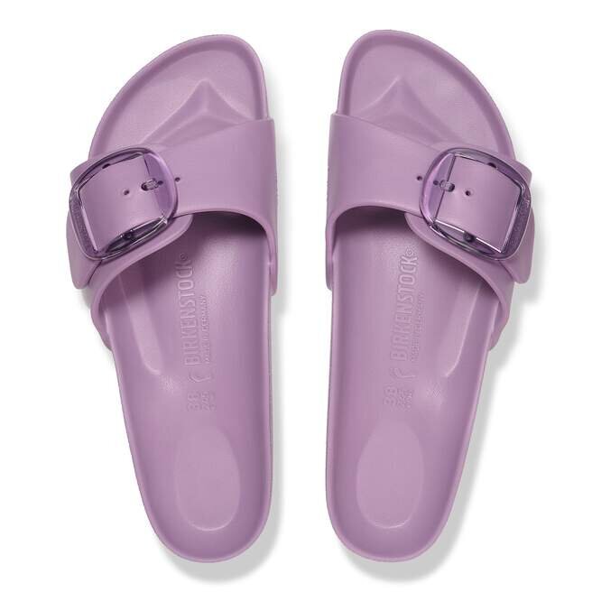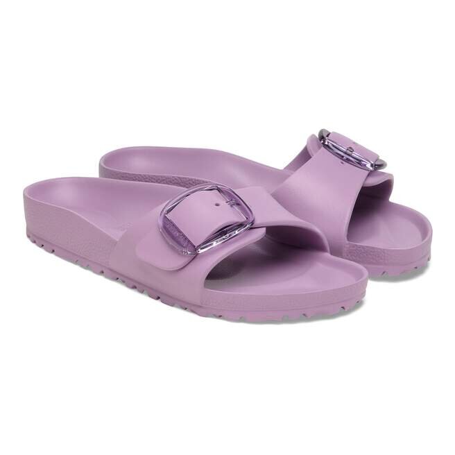 Il s’agit d’une nouvelle interprétation moderne de la Birkenstock Classic Madrid. Cette version est dotée de notre célèbre Big Buckle en matériau synthétique inoxydable et séduit par sa durabilité et son design minimaliste. Inspirée de la sandale en liège, elle est fabriquée en EVA, un matériau synthétique ultra-léger et très souple. L’EVA de haute qualité et inodore a été testée pour détecter la présence de substances nocives et combine de nombreuses qualités : elle est très légère, hautement élastique, amortissante, résistante à l’eau et douce pour la peau.