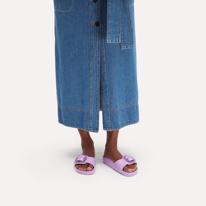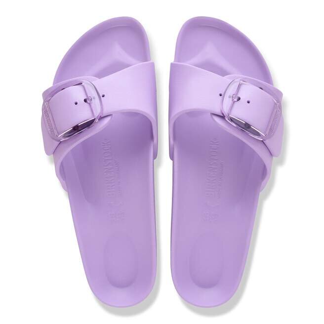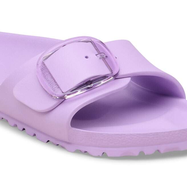 Il s’agit d’une nouvelle interprétation moderne de la Birkenstock Classic Madrid. Cette version est dotée de notre célèbre Big Buckle en matériau synthétique inoxydable et séduit par sa durabilité et son design minimaliste. Inspirée de la sandale en liège, elle est fabriquée en EVA, un matériau synthétique ultra-léger et très souple. L’EVA de haute qualité et inodore a été testée pour détecter la présence de substances nocives et combine de nombreuses qualités : elle est très légère, hautement élastique, amortissante, résistante à l’eau et douce pour la peau.