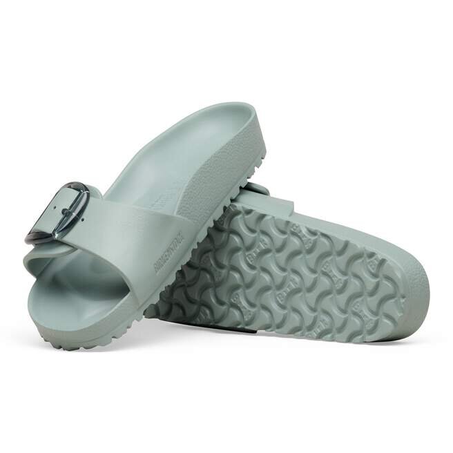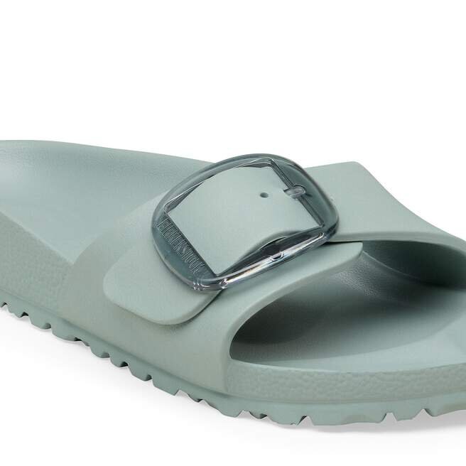 Il s’agit d’une nouvelle interprétation moderne de la Birkenstock Classic Madrid. Cette version est dotée de notre célèbre Big Buckle en matériau synthétique inoxydable et séduit par sa durabilité et son design minimaliste. Inspirée de la sandale en liège, elle est fabriquée en EVA, un matériau synthétique ultra-léger et très souple. L’EVA de haute qualité et inodore a été testée pour détecter la présence de substances nocives et combine de nombreuses qualités : elle est très légère, hautement élastique, amortissante, résistante à l’eau et douce pour la peau.
