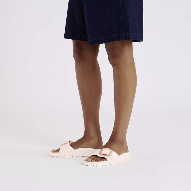 Il s’agit d’une nouvelle interprétation moderne de la Birkenstock Classic Madrid. Cette version est dotée de notre célèbre Big Buckle en matériau synthétique inoxydable et séduit par sa durabilité et son design minimaliste. Inspirée de la sandale en liège, elle est fabriquée en EVA, un matériau synthétique ultra-léger et très souple. L’EVA de haute qualité et inodore a été testée pour détecter la présence de substances nocives et combine de nombreuses qualités : elle est très légère, hautement élastique, amortissante, résistante à l’eau et douce pour la peau.