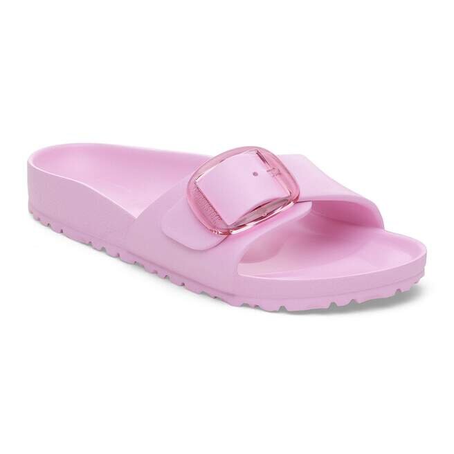 Il s’agit d’une nouvelle interprétation moderne de la Birkenstock Classic Madrid. Cette version est dotée de notre célèbre Big Buckle en matériau synthétique inoxydable et séduit par sa durabilité et son design minimaliste. Inspirée de la sandale en liège, elle est fabriquée en EVA, un matériau synthétique ultra-léger et très souple. L’Eva de haute qualité et inodore a été testée pour détecter la présence de substances nocives et combine de nombreuses qualités : elle est très légère, hautement élastique, amortissante, résistante à l’eau et douce pour la peau.