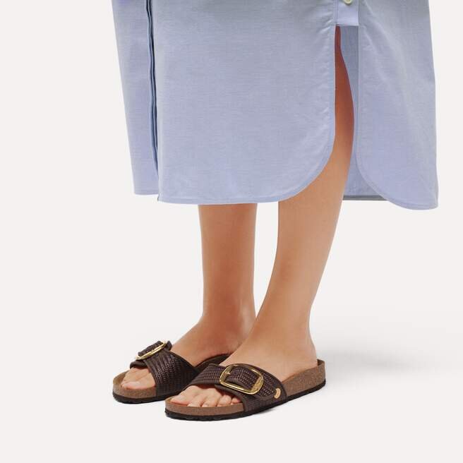 Style raphia, extra brillant. La sandale Madrid revisite le look tissé avec un liseré ton sur ton et une boucle surdimensionnée et brillante. Le tout sur une semelle intérieure profilée qui soutient réellement votre style.