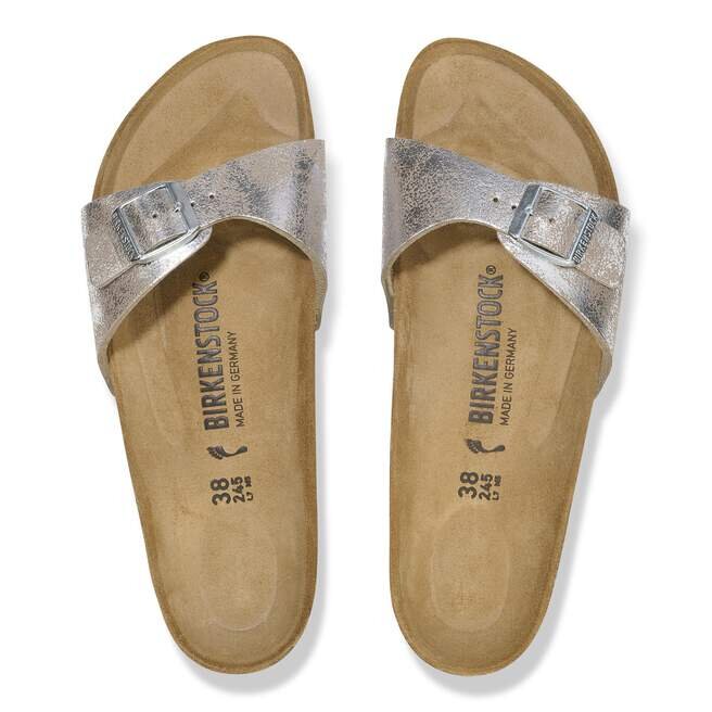 Véritable icône depuis 1963, la sandale Madrid s’est réinventée avec sa semelle intérieure profilée et sa bride unique et sophistiquée. Cette saison, un effet métallisé délavé rehausse le design original d’un éclat subtil. Ce modèle repose sur la semelle intérieure qui a fait son succès, conçue pour épouser la forme de votre pied et vous offrir un maintien optimal.