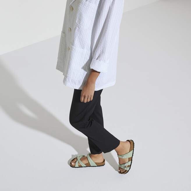 Le cuir naturel se reconnaît à sa surface non traitée. Birkenstock s’abstient délibérément de traiter les grains de surface et autres caractéristiques. Birkenstock utilise un cuir robuste d’une épaisseur de 2,8 à 3,2 millimètres comme matériau de la tige.