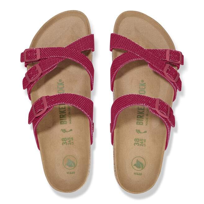 Des lanières fines entrecroisées pour un confort à la hauteur. Le design avant-gardiste à lanières de la Franca se décline en version vegan avec une tige en toile de coton 100 % naturel, vous offrant un look plus léger pour les mois les plus chauds. Des détails ton sur ton, des boucles gaufrées à la semelle en EVA, rehaussent le look. Le style reste fidèle à l’esprit Birkenstock grâce à l’Original Footbed, conçu pour s’adapter à votre pied et offrir un soutien sur mesure.