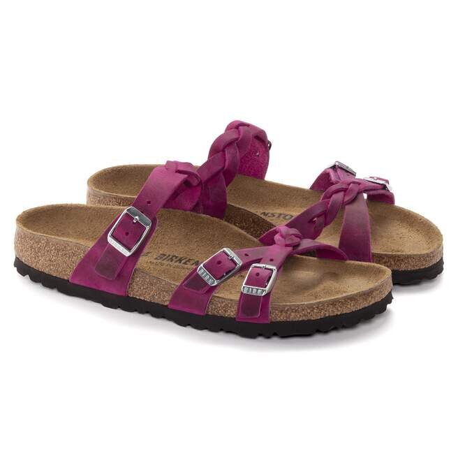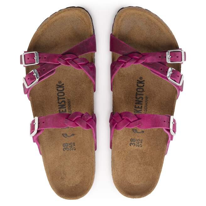 Le cuir naturel se reconnaît à sa surface non traitée. Birkenstock choisit délibérément de ne pas traiter le grain de la surface ni les autres caractéristiques du cuir. Birkenstock utilise un cuir robuste d’une épaisseur de 2,8 à 3,2 millimètres comme matériau de tige.