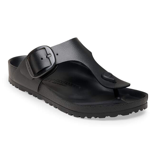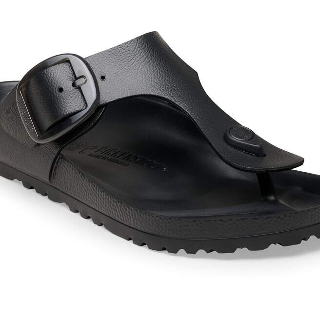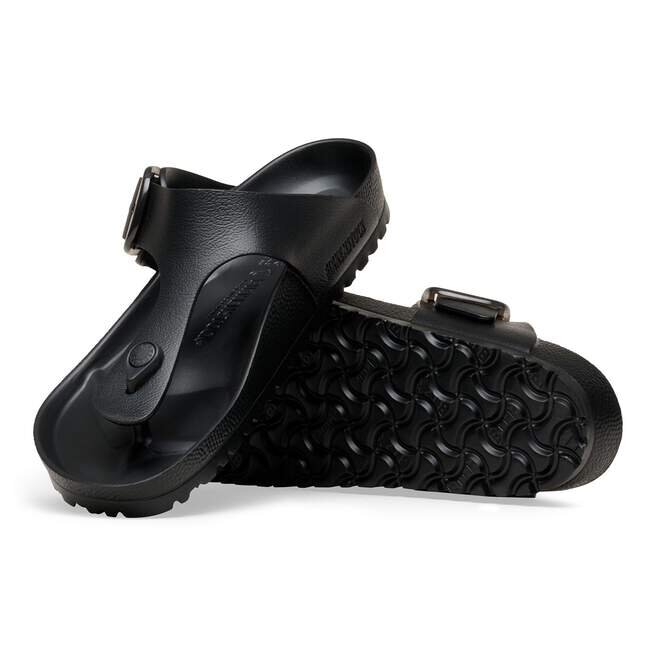 La Birkenstock Gizeh est un véritable classique. Cette version est dotée de notre célèbre Big Buckle en plastique résistant à la corrosion. Inspirée de la sandale en liège, elle est fabriquée en EVA, un matériau particulièrement léger et très souple. L’EVA de haute qualité, inodore, a été testé pour détecter la présence de substances nocives et combine de nombreuses qualités : Elle est très légère, très élastique, résistante à l’eau et douce pour la peau, et offre le confort que vous attendez de Birkenstock.