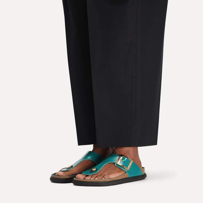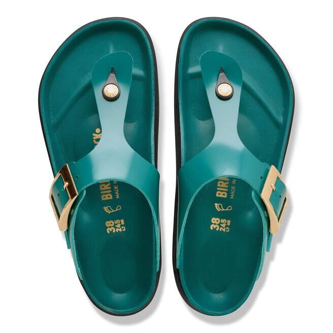 La Birkenstock Gizeh est un véritable classique et une sandale polyvalente et élégante. Notre élégante sandale à lanières allie une adhérence optimale à un design minimaliste et tendance. La semelle intérieure semi-raffinée est entièrement doublée de cuir Piumato souple, ce qui la rend exceptionnellement confortable. Les boucles en zamak brillantes et convexes attirent le regard avec sophistication. La tige est en cuir naturel de haute qualité avec un revêtement verni brillant.