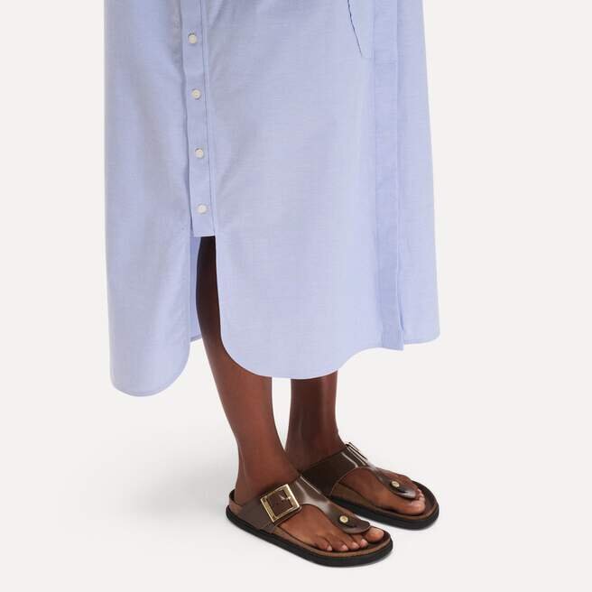 • Détails : Tong avec boucle métallique à broche réglable individuellement