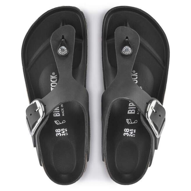 La tong moderne de Birkenstock. La Gizeh est un classique emblématique offrant un maintien caractéristique et un style raffiné et minimaliste. La version Big Buckle se distingue par une boucle surdimensionnée et une doublure de semelle intérieure ton sur ton. La tige est en cuir huilé, à la fois souple et résistant.