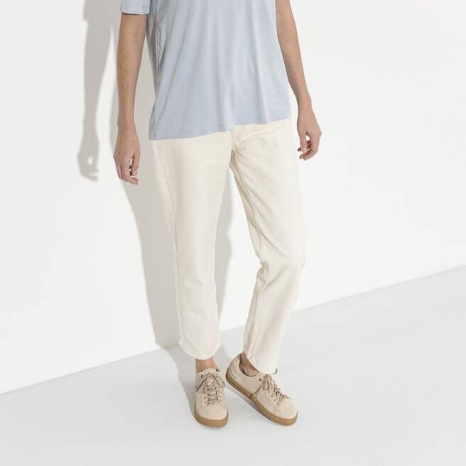 Le cuir naturel se reconnaît à sa surface non traitée. Birkenstock choisit délibérément de ne pas traiter les grains de surface et autres caractéristiques. Birkenstock utilise un cuir robuste d’une épaisseur de 2,8 à 3,2 millimètres comme matériau de tige.