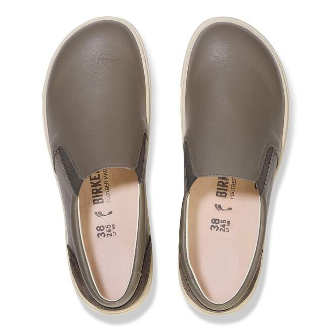 Le cuir naturel se reconnaît à sa surface non traitée. Birkenstock s’abstient délibérément de traiter le grain de la surface et les autres caractéristiques du cuir. Birkenstock utilise un cuir robuste d’une épaisseur de 2,8 à 3,2 millimètres comme matériau de la tige.