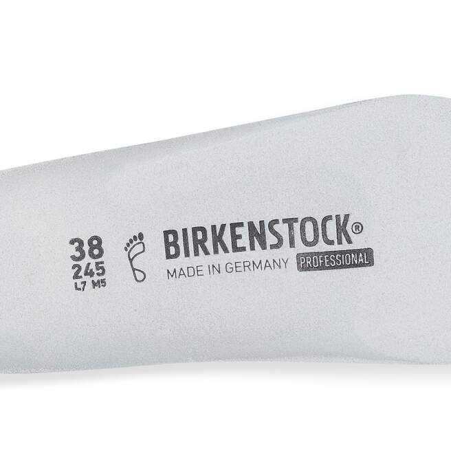 La semelle intérieure de rechange en liège de forme anatomique, avec doublure en cuir gris clair, peut être installée sur les sabots Birkenstock a630/a640 et remplacer la semelle d’origine. Veuillez noter que les sabots Birkenstock a630/a640 ne peuvent déployer leurs propriétés antistatiques que lorsqu’ils sont utilisés avec cette semelle intérieure de rechange en liège et cuir. Ce n’est pas le cas si une semelle intérieure classique est utilisée. La semelle intérieure est lavable à 30 °C maximum.