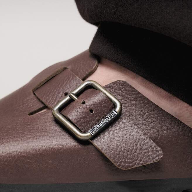 Le Boston Clog revisité. Ce modèle en cuir haut de gamme est doté d’une boucle métallique, un élément minimaliste inspiré de notre boucle carrée classique. Nous en avons affiné la forme sous tous les angles et l’avons légèrement agrandie pour mettre en valeur notre sabot emblématique, qui repose sur une semelle intérieure profilée d’origine. Un esprit traditionnel à l’intérieur comme à l’extérieur.