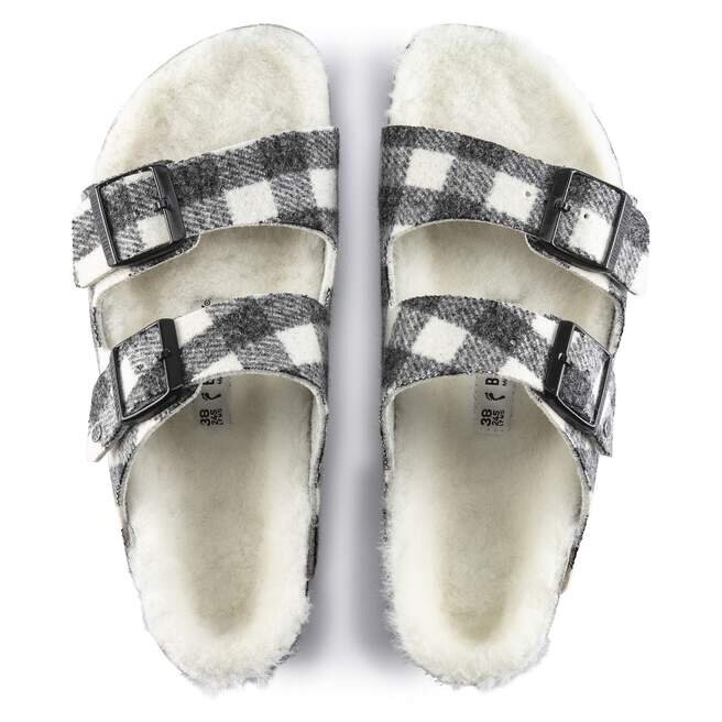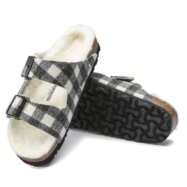 La célèbre Birkenstock Arizona est un modèle classique doté de deux lanières réglables. Elle se présente dans un motif à carreaux en laine douillette avec une doublure en véritable peau de mouton aux couleurs vives sur la semelle anatomique en liège et latex. Ces sandales sont parfaites pour les soirées d’hiver fraîches.La tige est en laine douce.