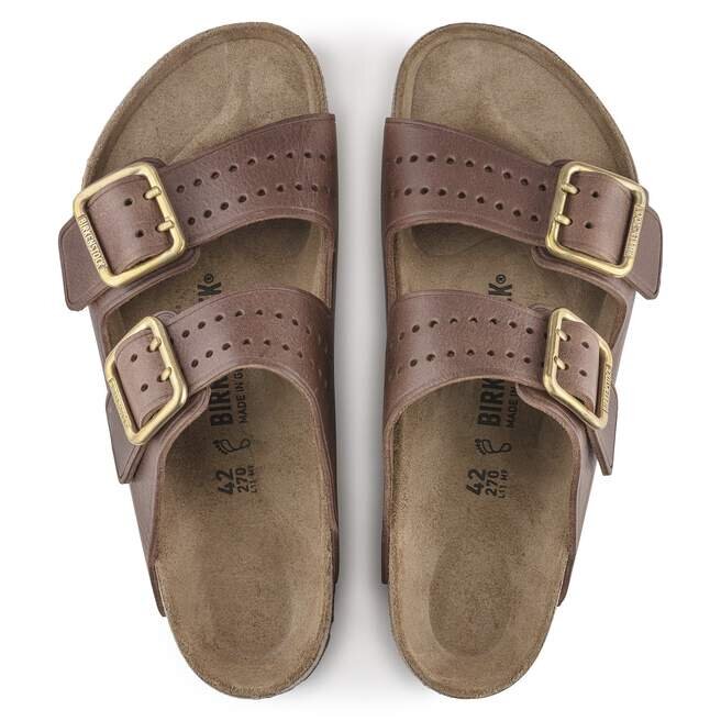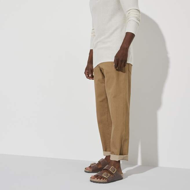Le cuir naturel se reconnaît à sa surface non traitée. Birkenstock s’abstient délibérément de traiter le grain de la surface et les autres caractéristiques du cuir. Birkenstock utilise un cuir robuste d’une épaisseur de 2,8 à 3,2 millimètres comme matériau de la tige.