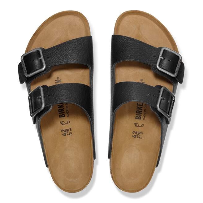 Le cuir naturel se reconnaît à sa surface non traitée. Birkenstock s’abstient délibérément de traiter le grain de la surface et les autres caractéristiques du cuir. Birkenstock utilise un cuir robuste d’une épaisseur de 2,8 à 3,2 millimètres comme matériau de la tige.