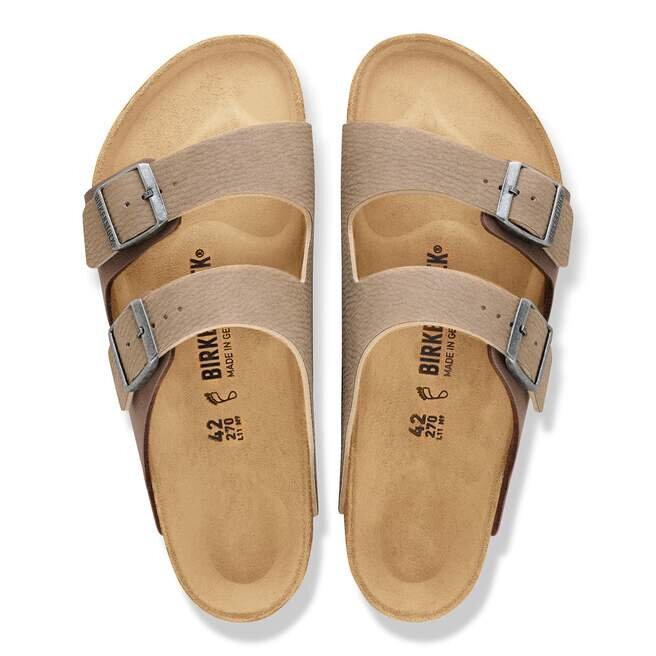 Le cuir naturel se reconnaît à sa surface non traitée. Birkenstock s’abstient délibérément de traiter le grain de la surface et les autres caractéristiques du cuir. Birkenstock utilise un cuir robuste d’une épaisseur de 2,8 à 3,2 millimètres comme matériau de la tige.