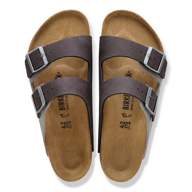 La Birkenstock Arizona est un véritable classique qui séduit les hommes et les femmes depuis des décennies. Cette sandale simple à deux brides incarne un design intemporel et jouit depuis longtemps d’un statut culte grâce à son confort. Le matériau synthétique sophistiqué Birko-Flor® confère aux lanières de la sandale un fini mat rappelant le grain du cuir naturel, tout en étant 100 % vegan. La tige est en microfibre lisse au toucher velouté.