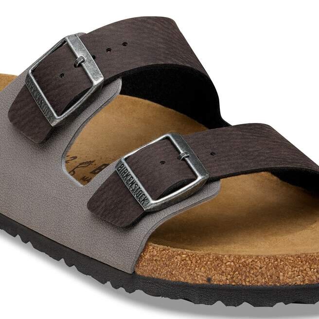 Le cuir naturel se reconnaît à sa surface non traitée. Birkenstock s’abstient délibérément de traiter le grain de la surface et les autres caractéristiques du cuir. Birkenstock utilise un cuir robuste d’une épaisseur de 2,8 à 3,2 millimètres comme matériau de la tige.