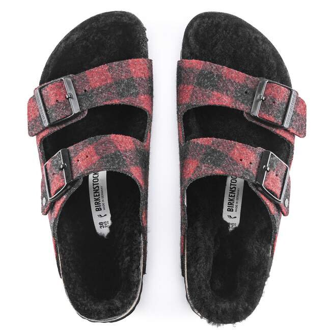 Le célèbre modèle Birkenstock Arizona est un modèle classique doté de deux lanières réglables. Il se présente dans un confortable motif à carreaux en laine, avec une doublure en peau de mouton véritable aux couleurs vives sur la semelle anatomique en liège et latex. Ces sandales sont parfaites pour les soirées fraîches d’hiver.La tige est en laine douce.