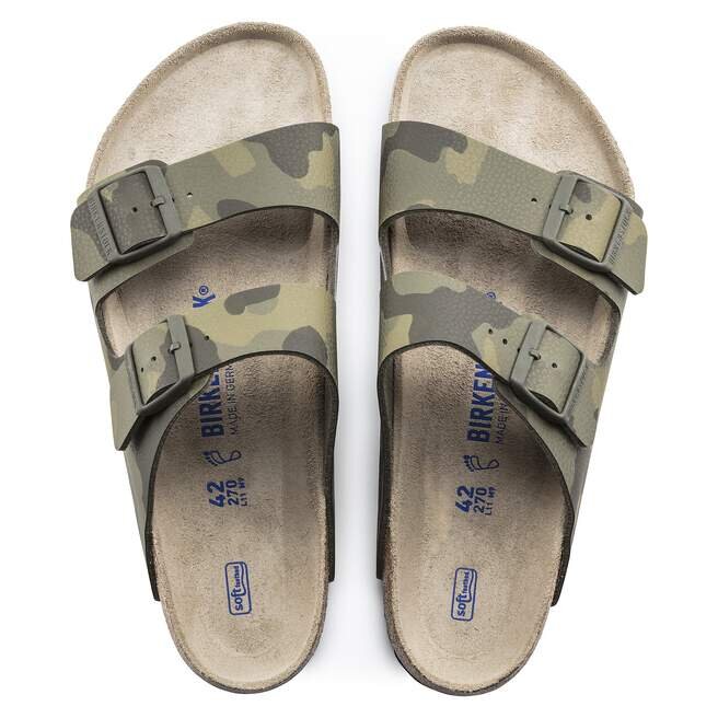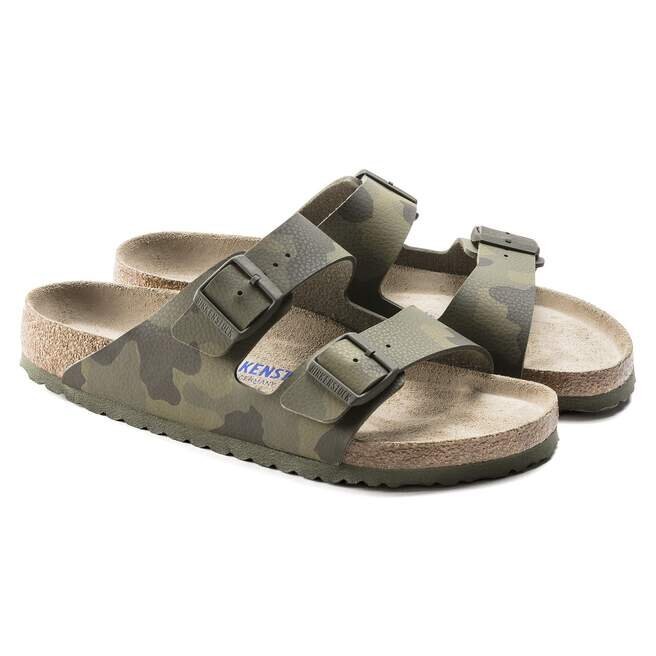 Le légendaire modèle à deux lanières de Birkenstock : l’Arizona. Cette version est également dotée d’une couche de mousse supplémentaire, dont le Soft Footbed offre un confort accru. Présentée dans un nouveau motif camouflage Birko-Flor®