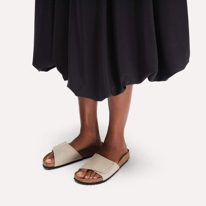 La Birkenstock Sylt 2.0, un modèle décontracté, s’inspire de la classique Madrid et se distingue par son design compact doté d’une large bande auto-agrippante. La tige est fabriquée dans un daim particulièrement souple qui épouse le pied comme une seconde peau.