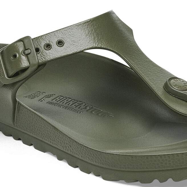 La Birkenstock Gizeh est notre sandale à Tongs classique. Inspirée du modèle Cork Original, cette sandale est fabriquée en EVA ultra-léger et très souple. Ces sandales colorées absorbent les chocs, sont imperméables et respectueuses de la peau. Portez-les à la plage, au jardin ou dans les espaces bien-être et spa. C’est le complément idéal à vos sandales Birkenstock Classiques.